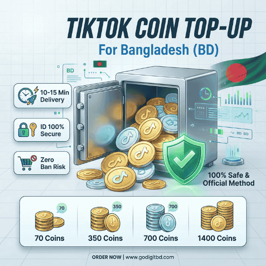 আপনার প্রিয় টিকটকারদের লাইভে গিফট করতে চান, কিন্তু কার্ড না থাকায় কয়েন কিনতে পারছেন না? Go Digit BD দিচ্ছে ১০০% লিগ্যাল এবং অফিশিয়াল উপায়ে টিকটক কয়েন টপ-আপ গ্যারান্টি। আমাদের সার্ভিস ব্যবহার করে নিশ্চিন্তে আপনার টিকটক অ্যাকাউন্টে কয়েন রিচার্জ করুন।
